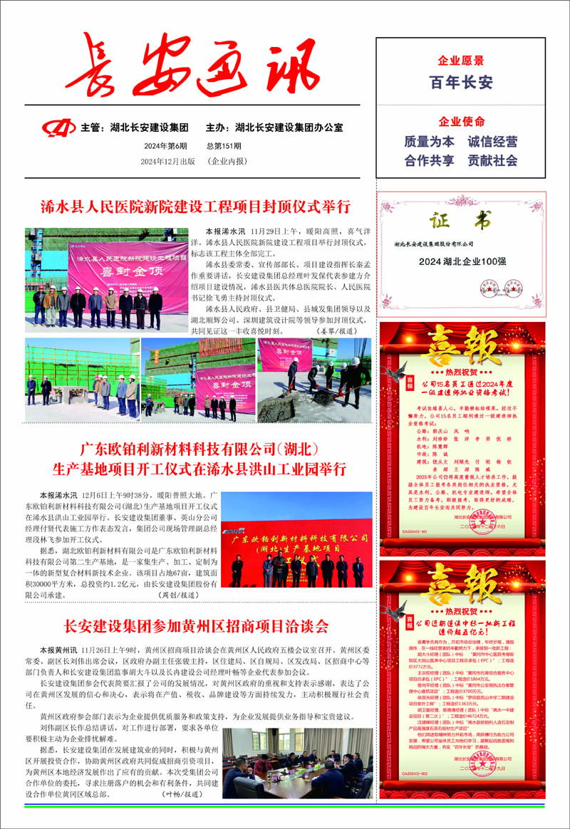 • 湖北長(zhǎng)安建設(shè)集團(tuán)股份有限公司2024年3月招聘簡(jiǎn)章
