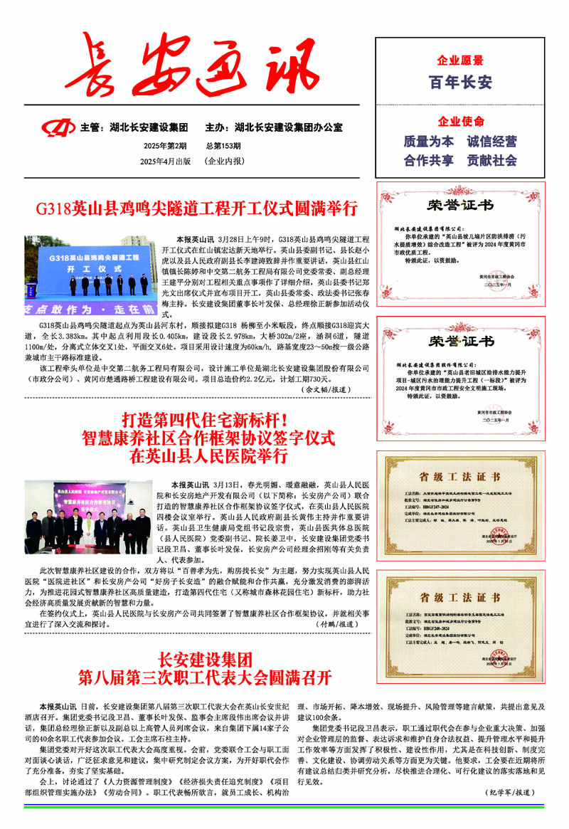 • 2025-09-27 湖北長(zhǎng)安建設(shè)集團(tuán)股份有限公司 榮獲2025湖北民營(yíng)企業(yè)100強(qiáng)稱(chēng)號(hào),位列第35名
